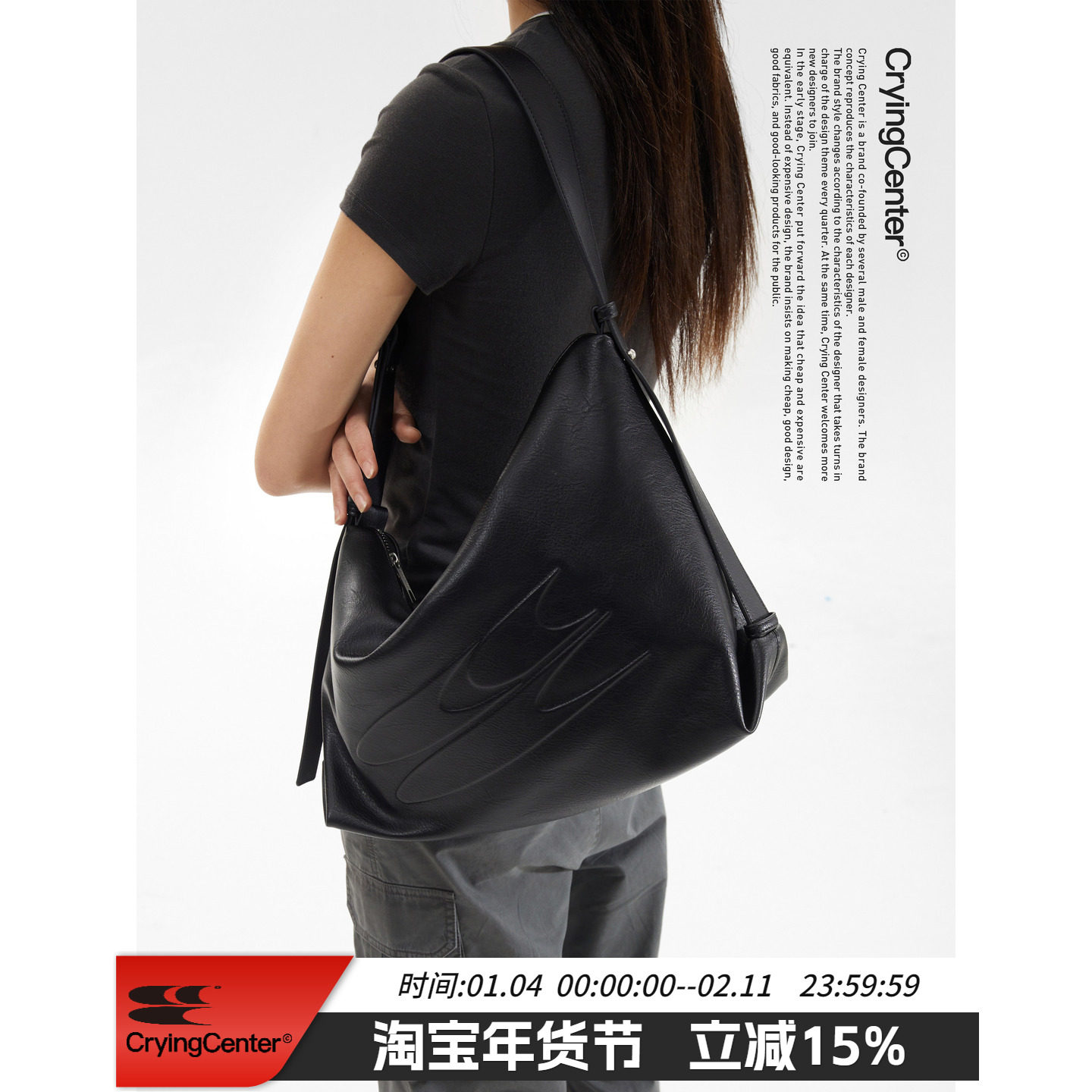 CryingCenter油蜡黑皮不规则斜跨单肩手提背包大容量包日常通勤