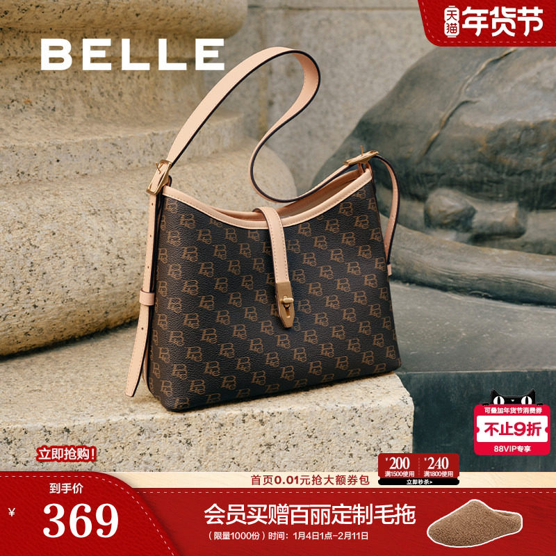 百丽包包女商场同款老花通勤礼物大容量单肩斜跨托特包X7023CX4
