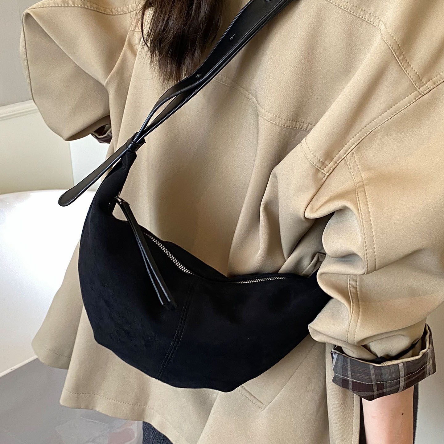 简约通勤轻便2025新款磨砂皮饺子包韩版经典款百搭单肩包斜跨包包