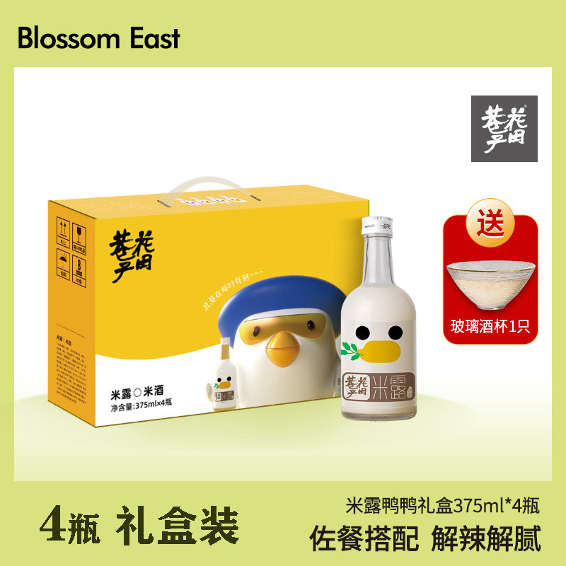 花田巷子米露米酒低度女士糯米酒甜酒酿冬酿酒稠酒375ml*4瓶礼盒