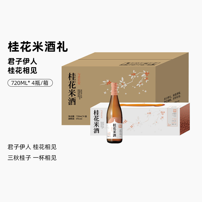 花田巷子桂花米酒礼盒720ml*1盒6度甜米酒桂花米酒礼固态纯米酒