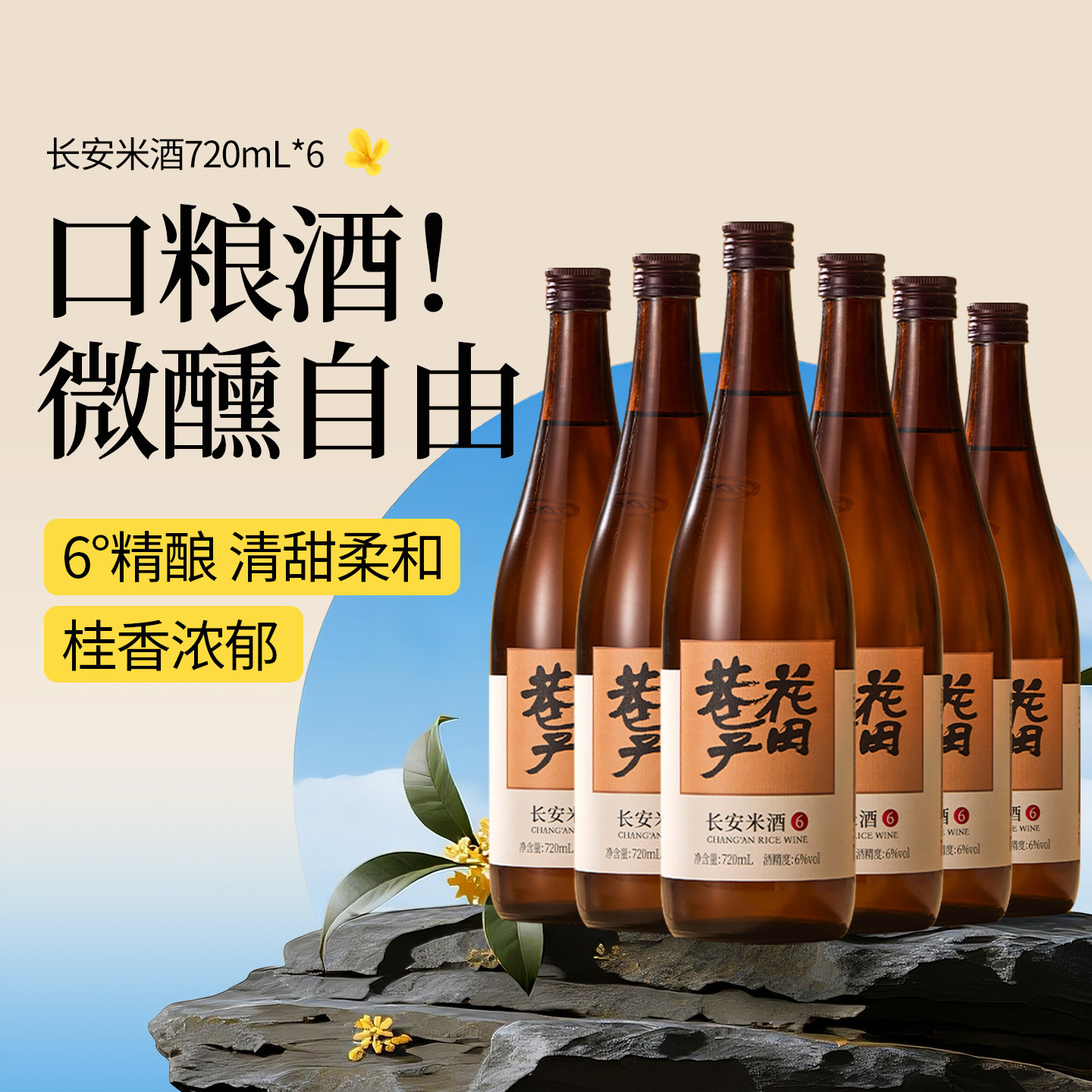 花田巷子米酒6°清米酒720ml清酒纯粮酒桂花米酒长安米酒国产清酒