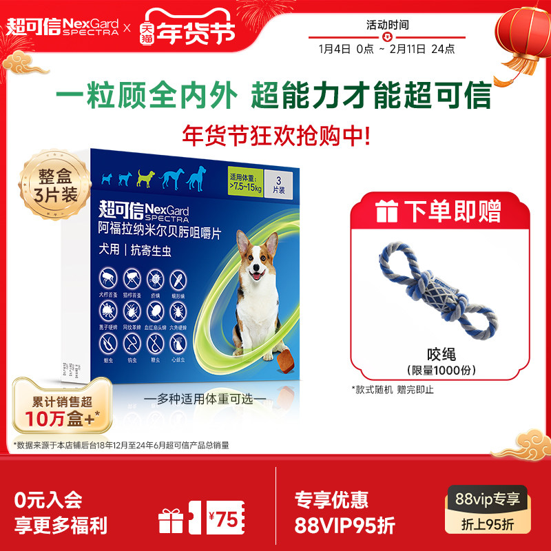 福来恩旗舰店超可信狗体内外驱虫一体同驱跳蚤蜱虫蠕形螨犬用驱虫