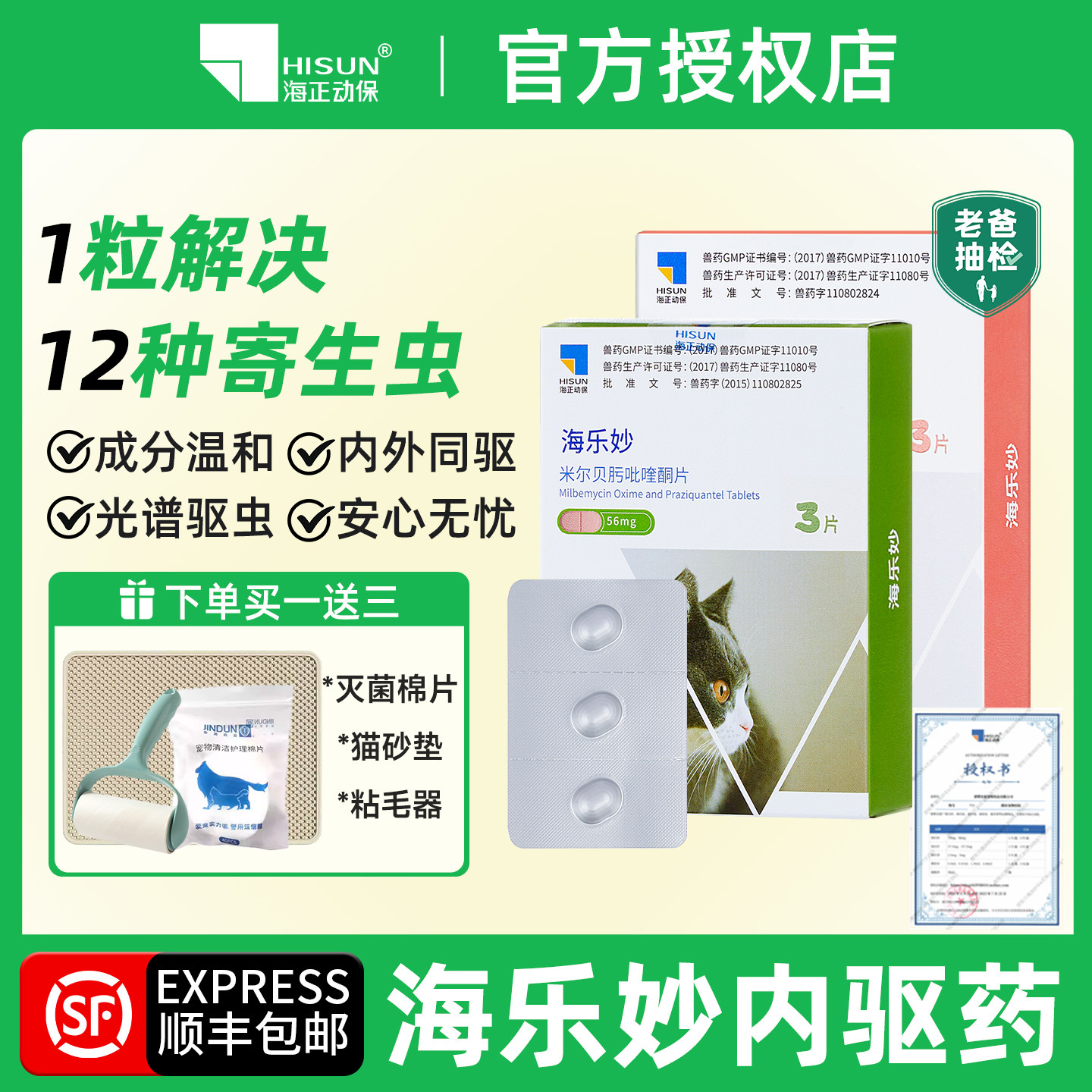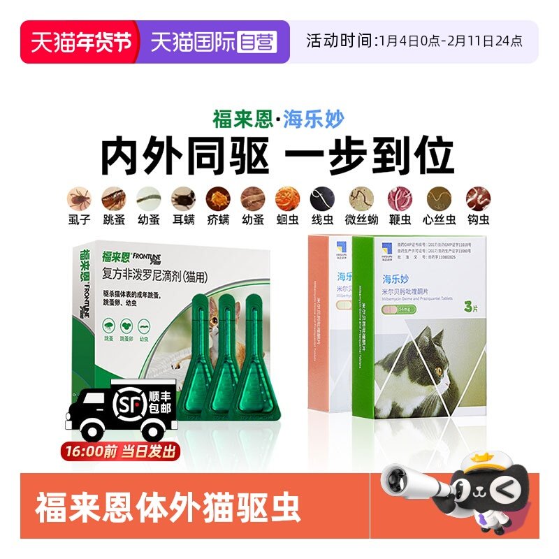 海乐妙驱虫药猫咪体内外一体大同驱宠物爱幼成猫福来恩海乐妙套餐
