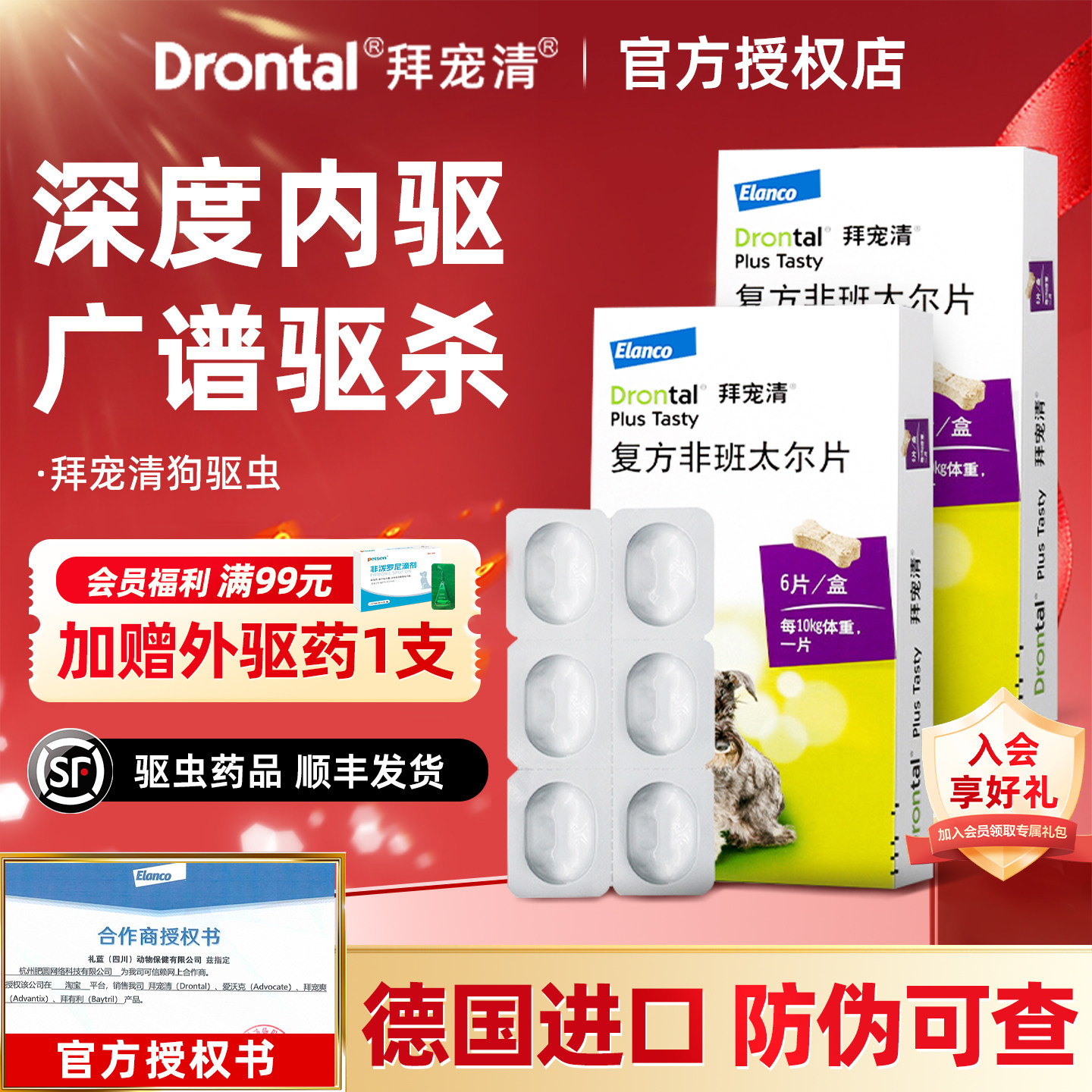 拜宠清体内驱虫狗狗驱虫药拜耳拜宠清狗驱虫宠物幼犬用福来恩驱虫