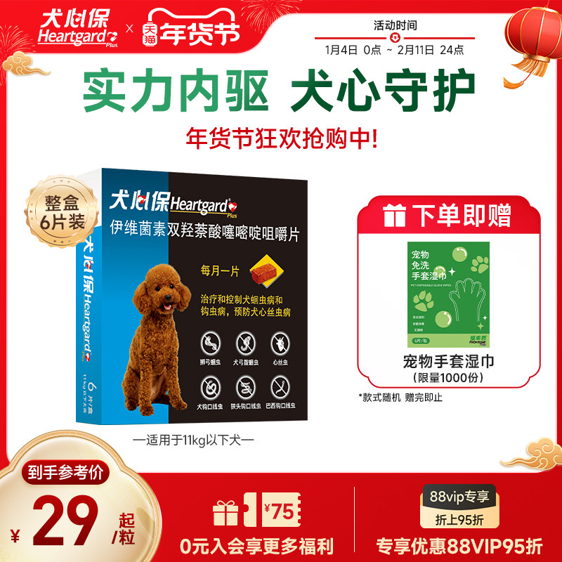 犬心保小型犬体内驱虫幼犬驱虫心丝虫蛔虫口服药6粒装搭配福来恩