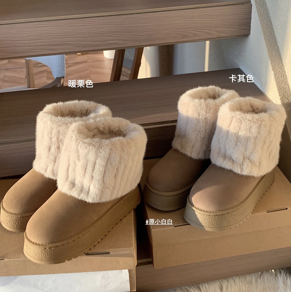 赵露思同款毛毛雪地靴两用貂毛加绒加厚冰岛短靴厚底大头东北棉靴