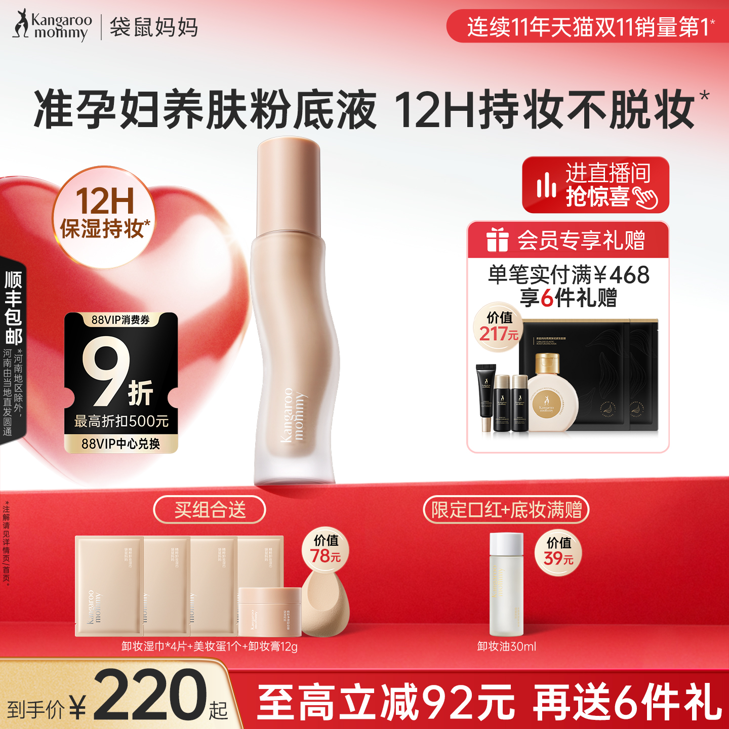 【双11开卖】袋鼠妈妈准孕妇粉底液遮瑕敏感肌可用化妆品专用彩妆