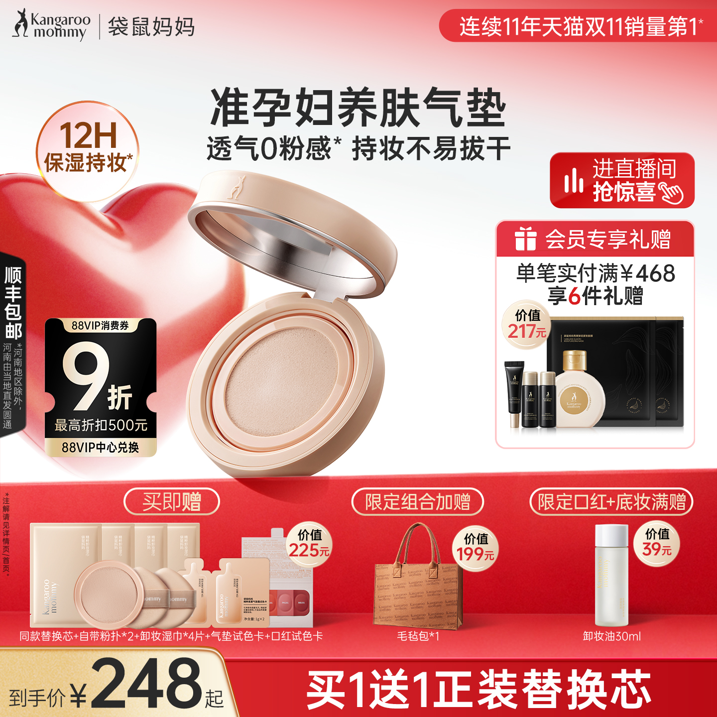 【小鱼海棠推荐】袋鼠妈妈准孕妇气垫养肤专用粉底彩妆可用化妆品