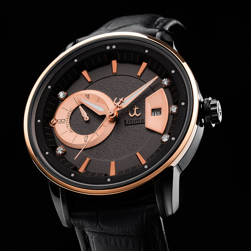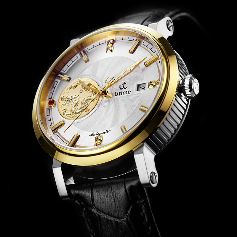 Utime高端品牌机械手表男款头层皮带日历款防水男性手表广州腕表
