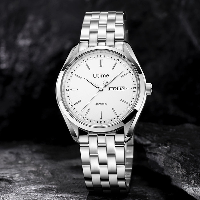 Utime高档品牌男士手表不锈钢真皮防水石英表腕表商务男性手表男