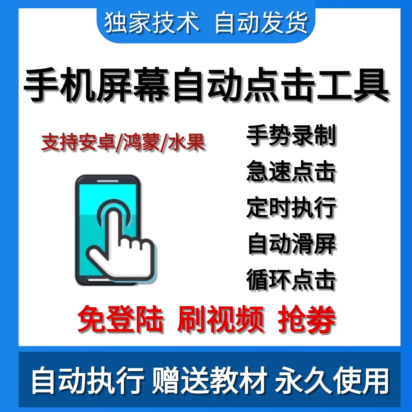 手机屏幕自动点击器滑屏快速连点器软件视频录制任务抢劵定时辅助