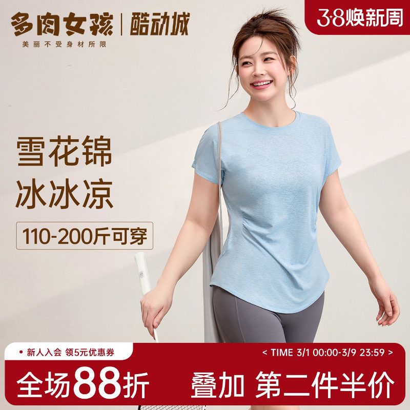 运动短袖T恤女夏季速干瑜伽服上衣凉感修身胖mm大码运动健身套装
