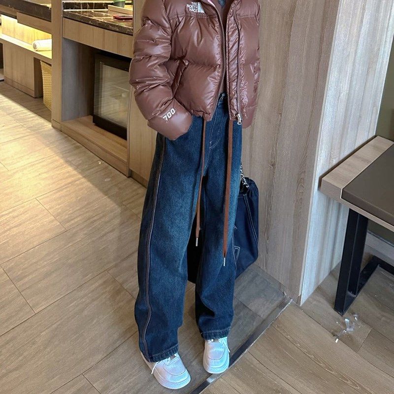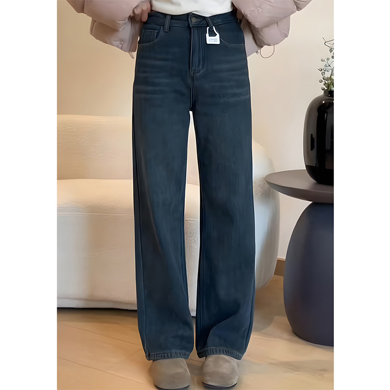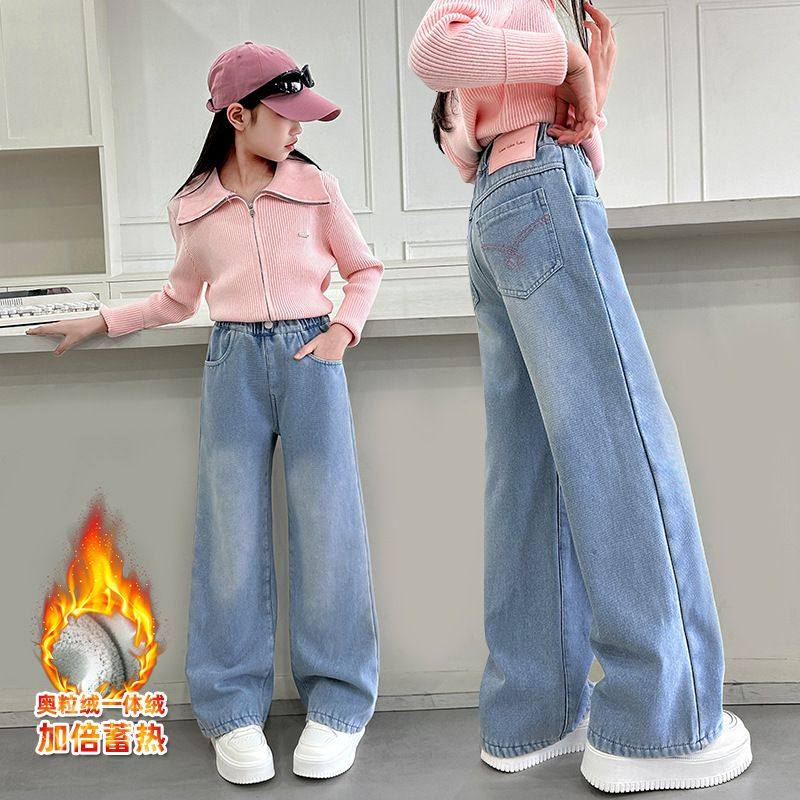 2025年新款女童冬季加绒牛仔裤韩版炸街女大童直筒阔腿裤中学生