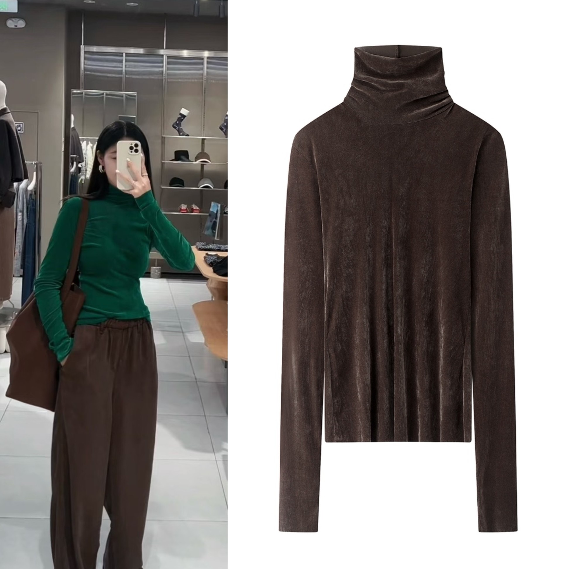 2025秋冬新款四色复古高级感丝绒高领纯色长袖打底衫内搭上衣女