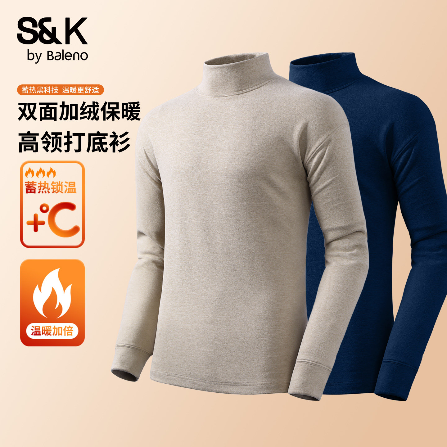 班尼路S&K双面蚕丝绒高领长袖t恤男冬季新款青少年弹力内搭秋衣A