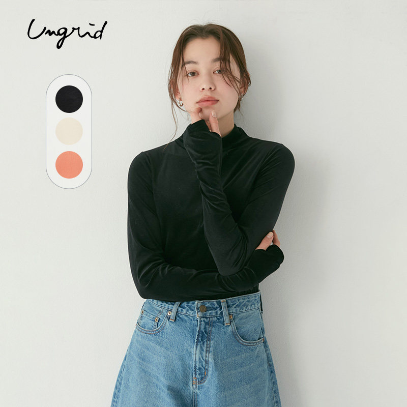 Ungrid2024冬季时尚新品百搭通勤半透丝绒高领长袖上衣1124527233