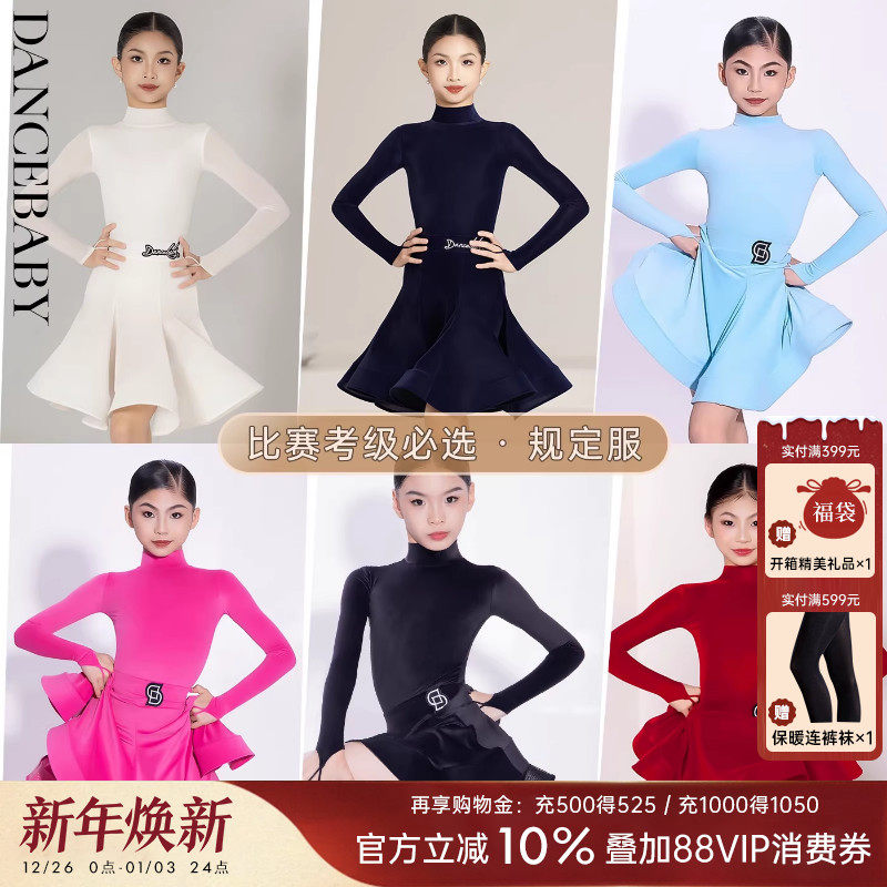Dancebaby拉丁舞服规定服新款长袖薄丝绒高领夏季规定服DAS676B