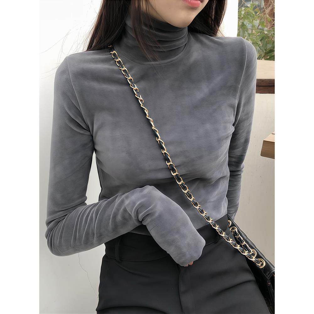 时尚打底衫女秋冬灰色金丝绒高领新款堆堆领冬保暖加绒内搭1224h