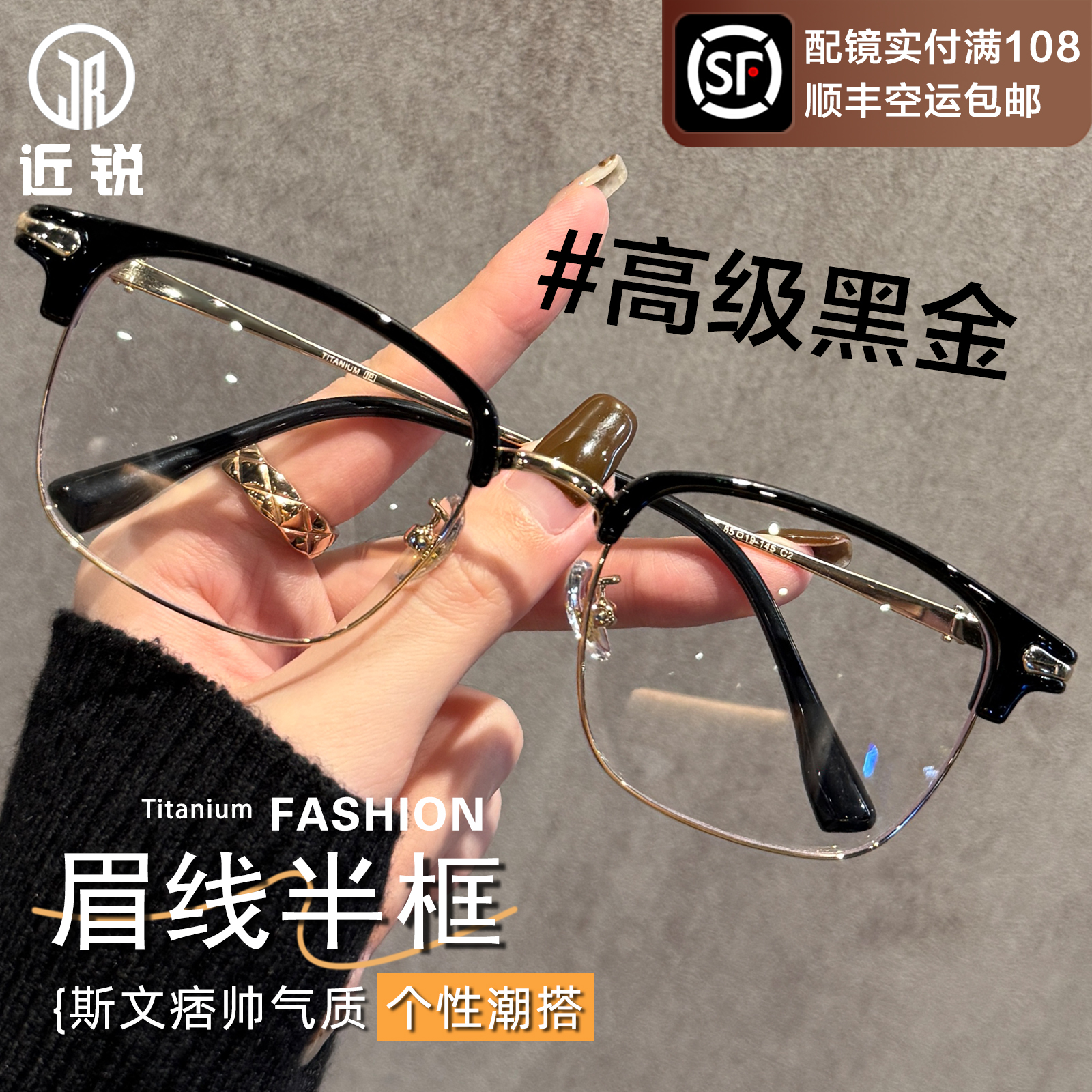 超轻钛架半框眼镜女近视可配有度数男大框显脸小眼睛镜架大脸显瘦