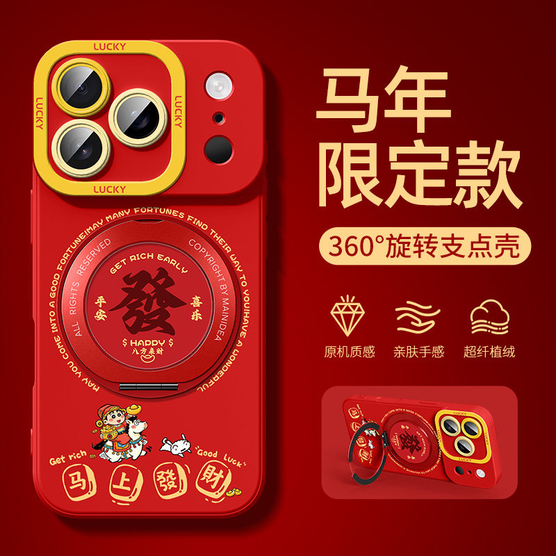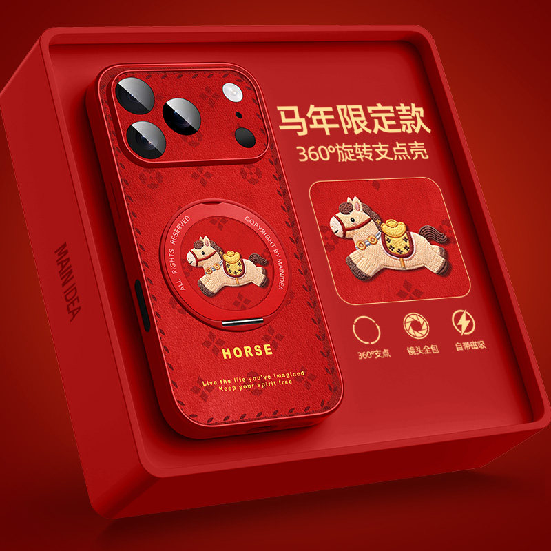 苹果17promax手机壳马年iPhone16带支架ip15pro新款i14磁吸13全包12mini11适用8plus7/6s外壳x/xr套se3/2air