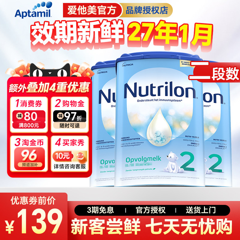 Nutrilon荷兰牛栏2段婴儿奶粉白金版二段新生儿宝宝诺优能官方店
