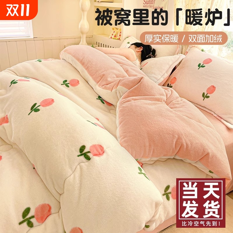 加厚法兰绒被子冬被全套一整套被芯冬天保暖珊瑚绒被套牛奶绒冬被