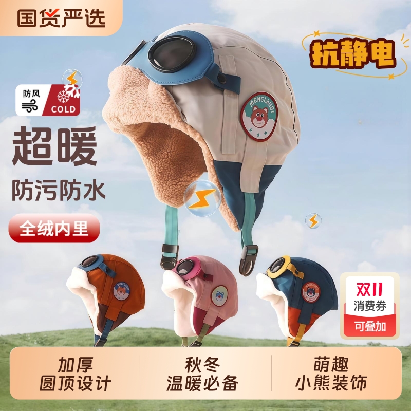 KK树儿童飞行员帽子秋冬季男童雷锋帽女护耳防风防寒宝宝加绒保暖