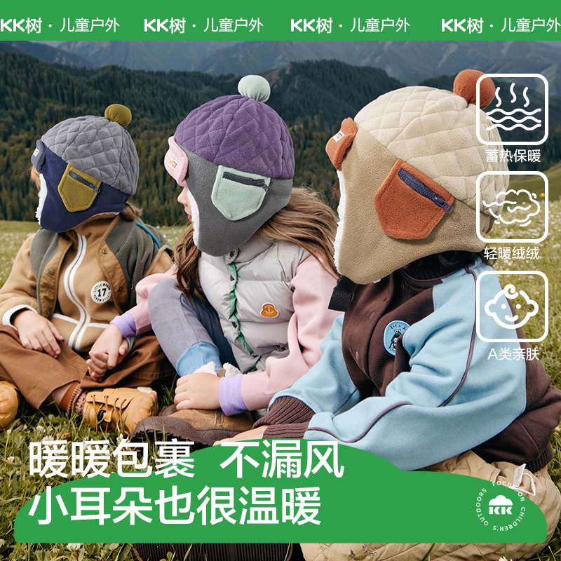 KK树儿童帽子秋冬季男童女孩护耳雷锋帽宝宝保暖围脖防风防寒新款