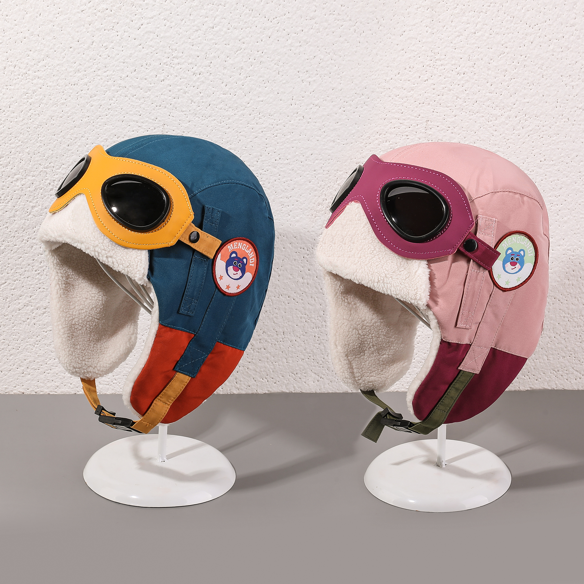 云朵工厂恐龙飞行员拼接眼镜护耳帽秋冬保暖雷锋帽子可拆卸护目镜