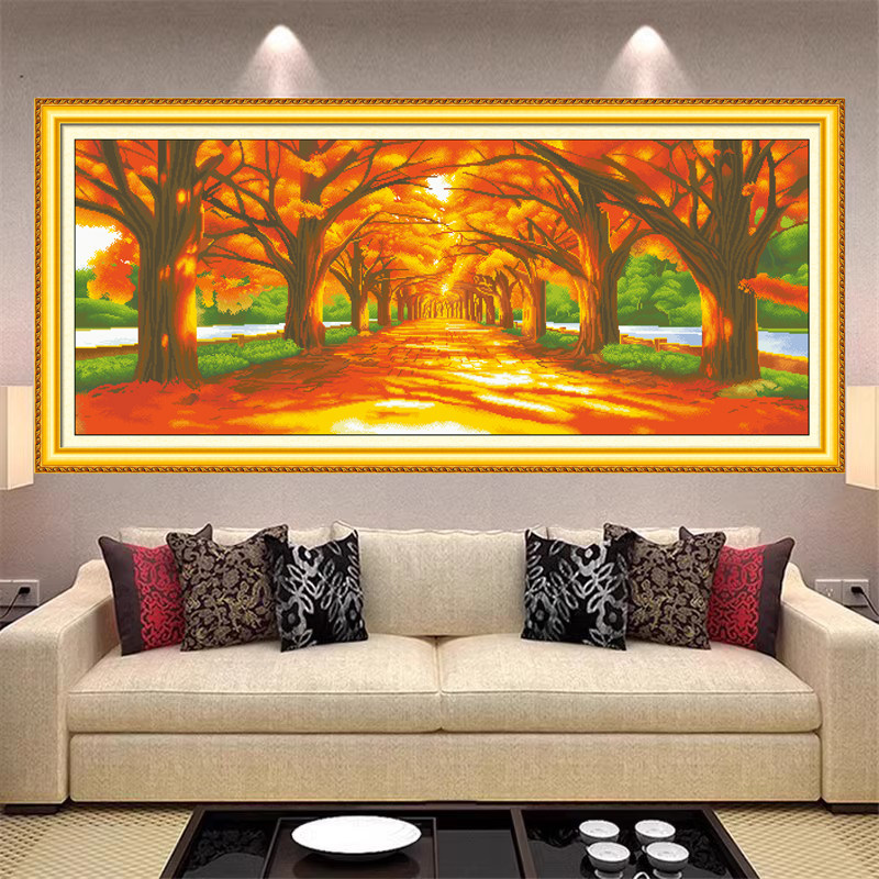 满绣黄金满地十字绣风景画装饰大客厅画大幅加长版3米7多尺寸可选