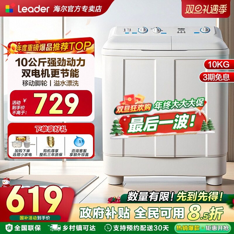 换新补贴海尔出品统帅8/10kg大容量家用全自动抗菌波轮洗衣机527