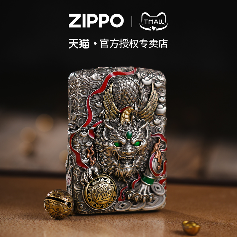 zippo打火机灵动貔貅正品古银重甲防风煤油吉祥寓意男士礼物