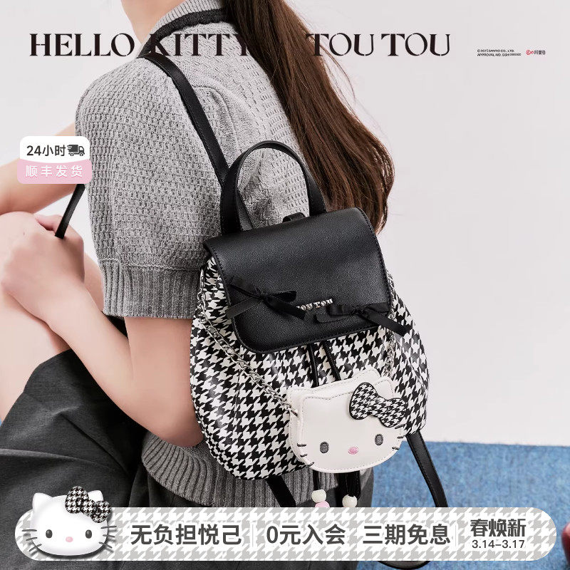 Hellokitty千金系列TOUTOU凯蒂猫千鸟格双肩包凯蒂猫子母背包礼物