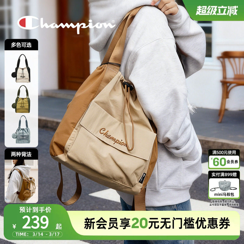 champion冠军双肩包新款子母包女手提单肩托特包大容量抽绳春夏