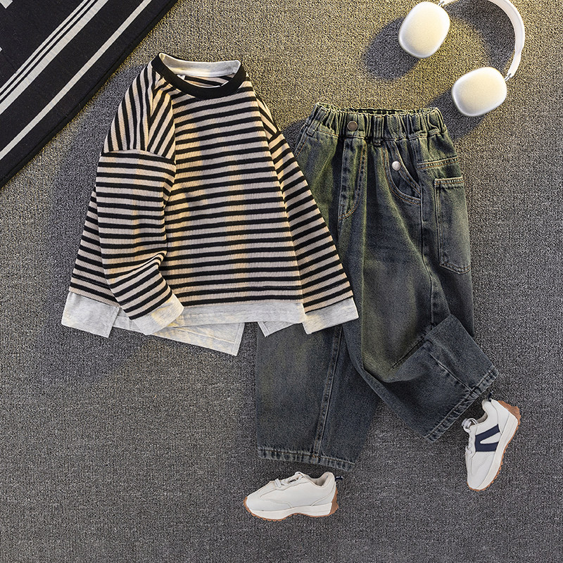 5男童春装牛仔套装6春秋2026款好看12大童男装13岁男孩洋气儿童装