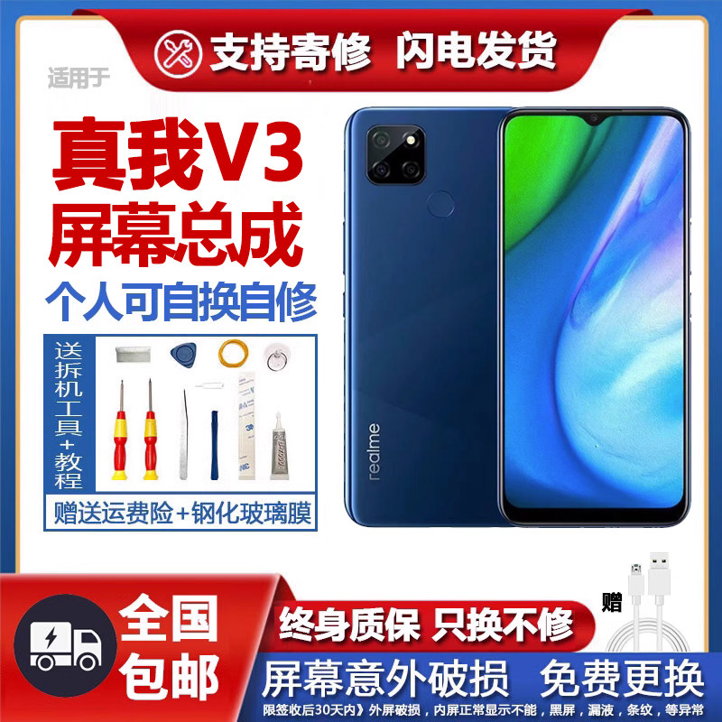 适用真我V3屏幕总成原装带框realme V3手机萤幕内外触摸液晶萤幕