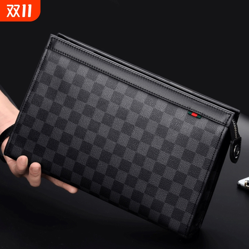 欧美风男手拿包男款手包高级感大格子手抓包夹包商务信封包手腕包