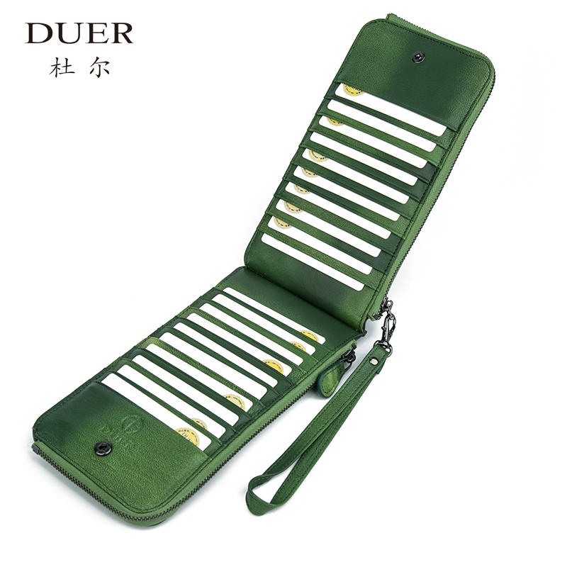 DUER欧美真皮编织小卡包女式多卡位钱包薄拉链手包男士名片夹卡套