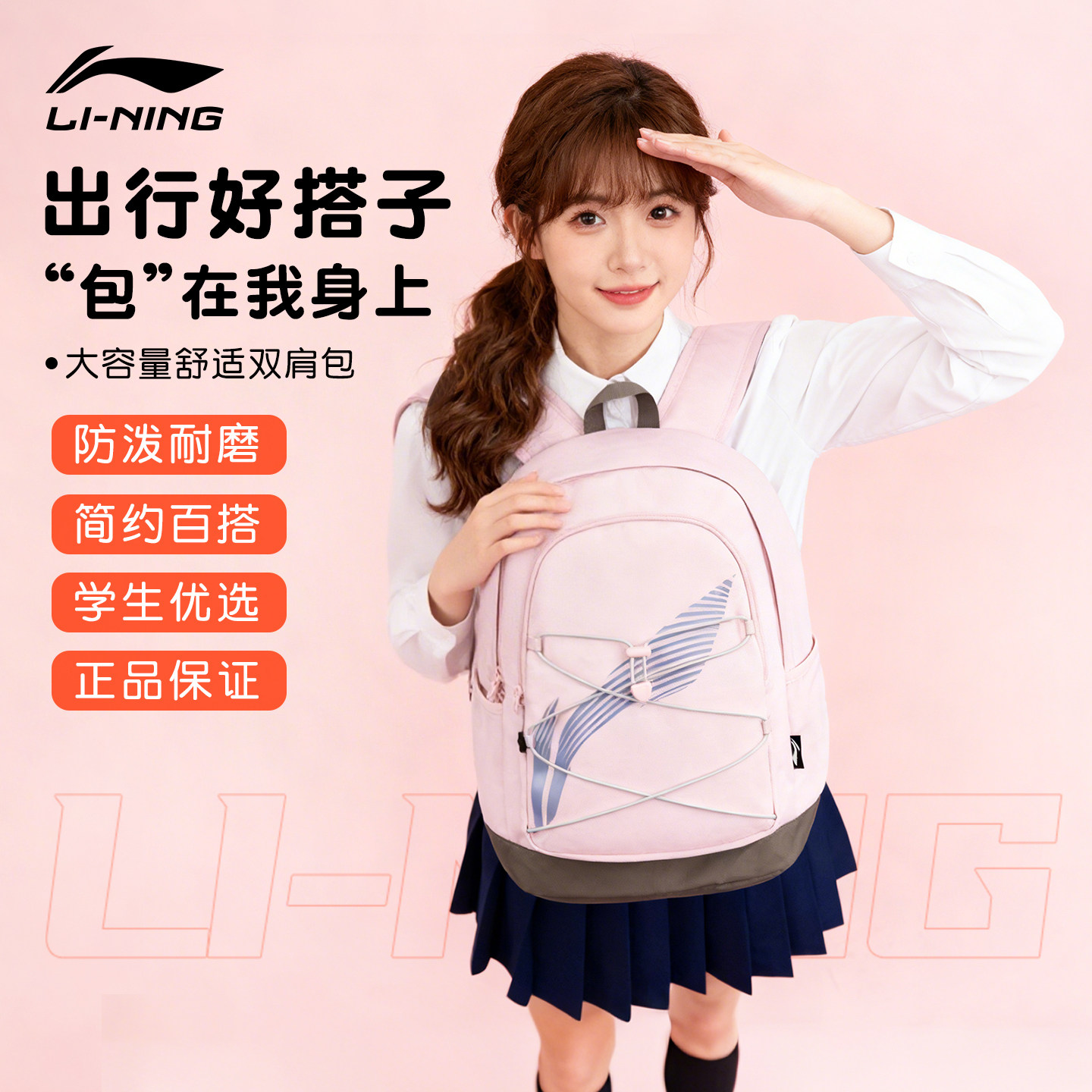 李宁双肩包女2026新款初高中学生书包大容量轻便旅行背包电脑包