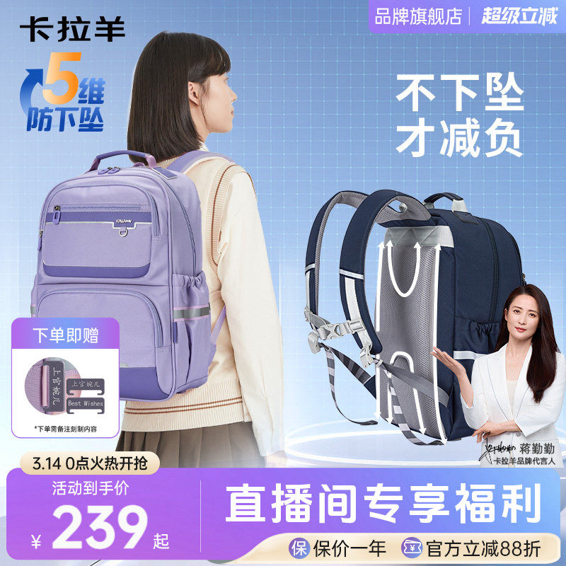 卡拉羊中学生书包大容量轻便减负初中学生双肩包男防下坠背包女新