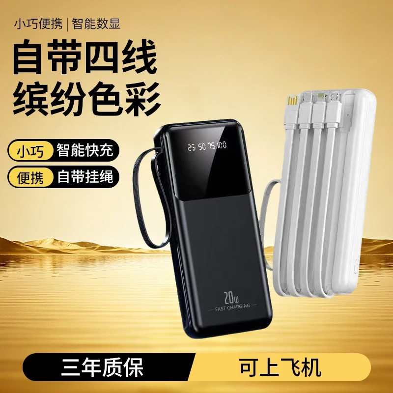 3c认证适用自带四线大容量充电宝明通发数码店手机户外移动电源安卓苹果华为通用智能快充神器