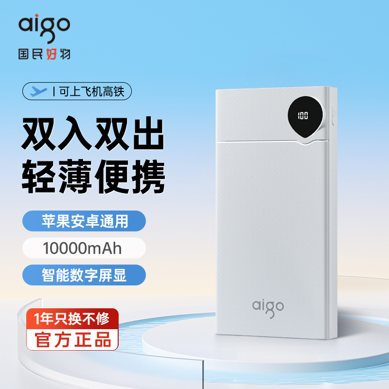 爱国者充电宝10000毫安超薄小巧便携充电宝超大容量智能屏显快充移动电源可上飞机适用苹果安卓手机定制logo