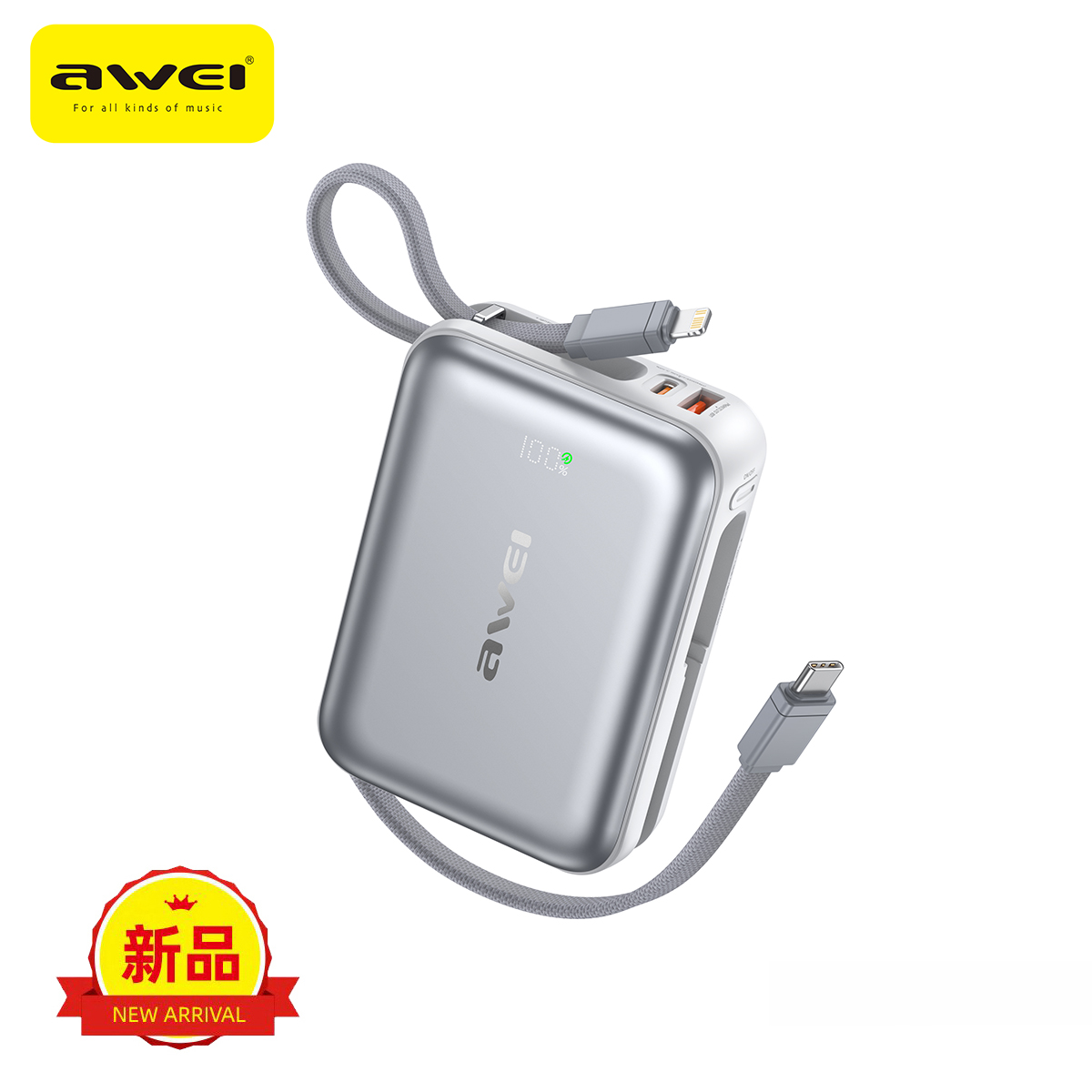 新款手机通用45W超级快充移动电源3C安全认证可上飞机铝合金外壳智能温控自带双线大容量20000毫安安卓苹果用