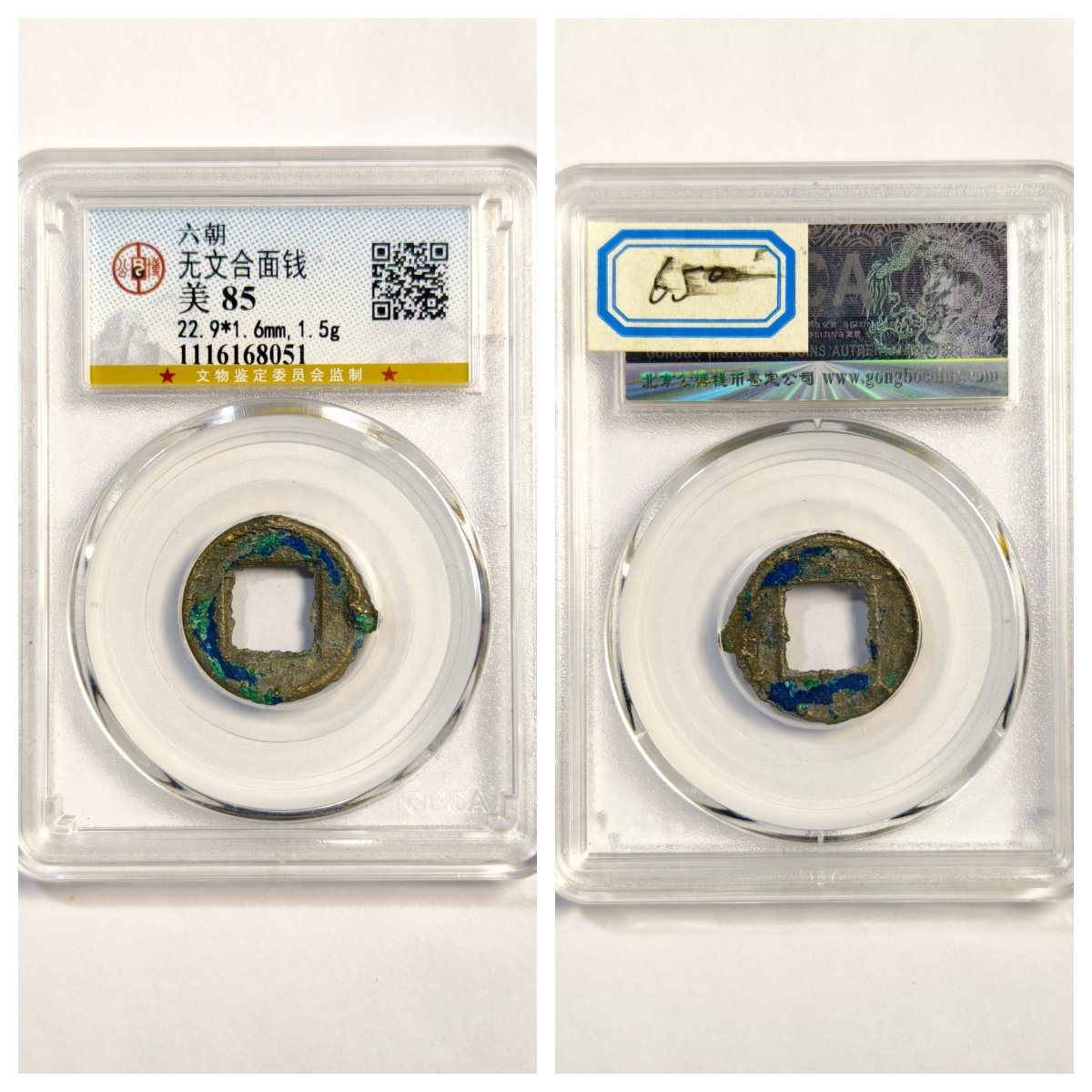 公博盒权威鉴定美85评级六朝无文合面钱古代老铜币收藏保真品古董