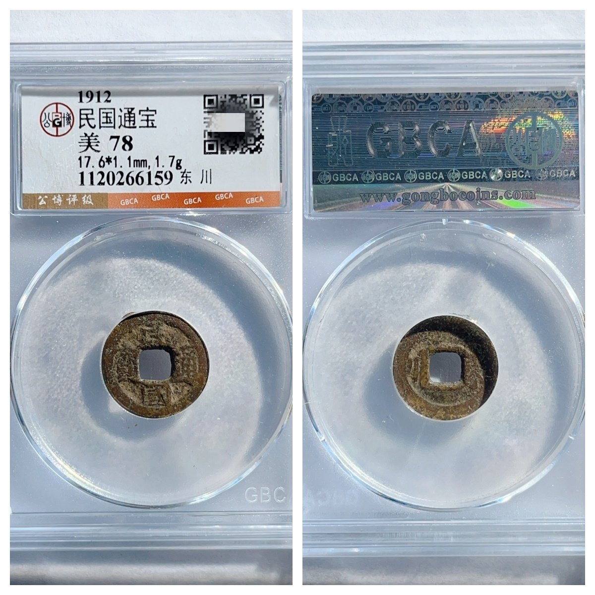 公博美78评级1912年民国通宝背东川古代老铜钱币收藏真品古董文玩