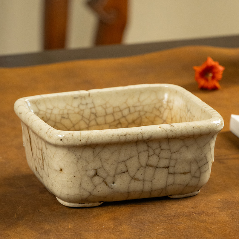 清代 哥釉方形水仙盆老物件收藏品文玩古董瓷器真品中式花盆摆件