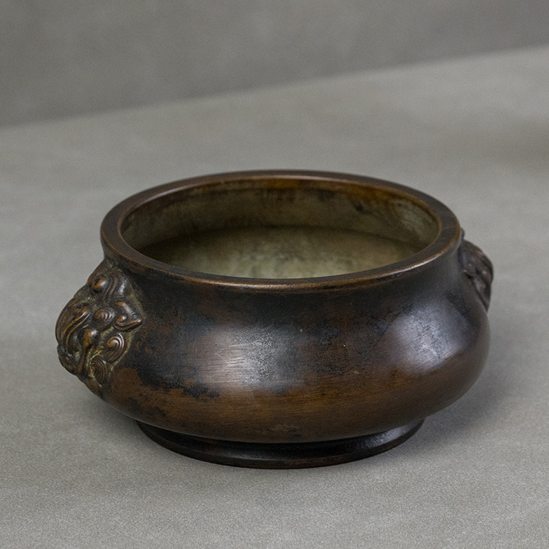 清代铜兽耳圈足炉老物件古玩古董收藏真品客厅办公室桌面摆件香炉