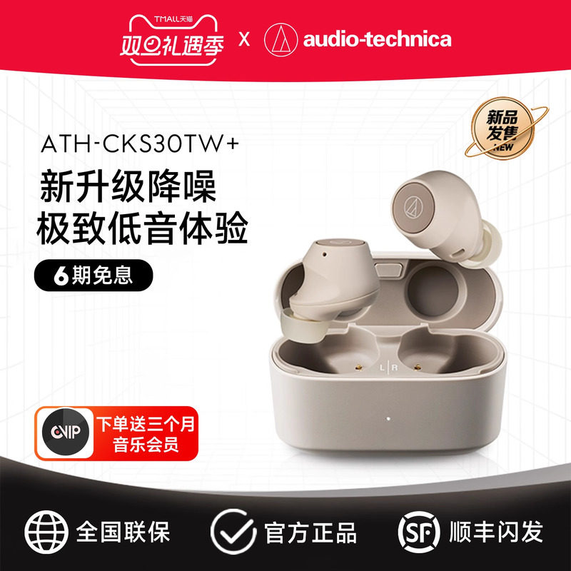 【新品】铁三角ATH-CKS30TW+真无线蓝牙降噪耳机运动入耳式重低音