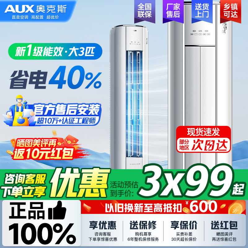 AUX奥克斯空调大3匹柜机大2p新一级能效变频冷暖立式柜机大3p三级